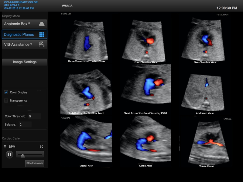 - Color STIC - цветная трехмерная реконструкция или мультиплановое изображение сокращений сердца плода в сочетании с цветным допплером в режиме реального времени (необходим модуль STIC).