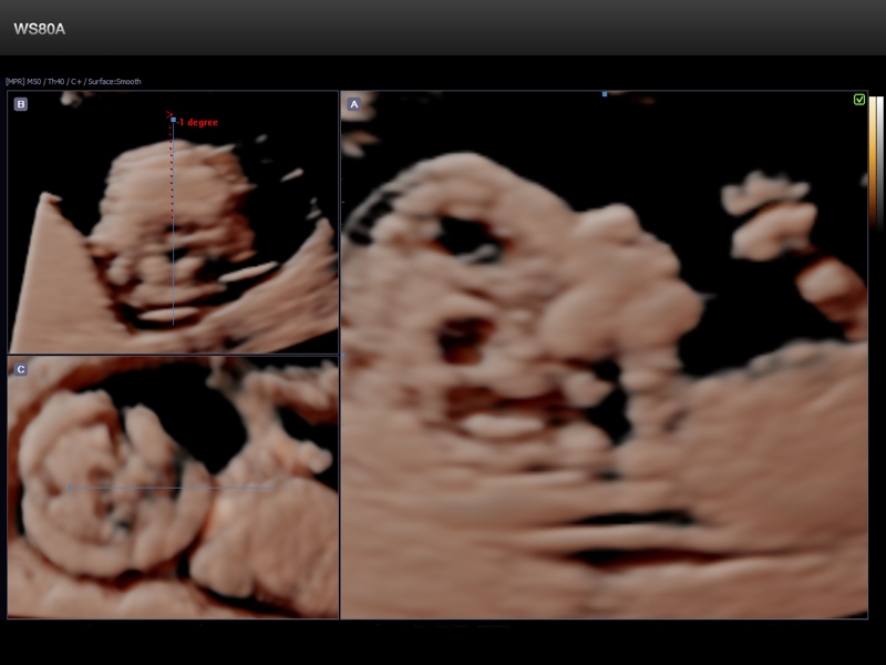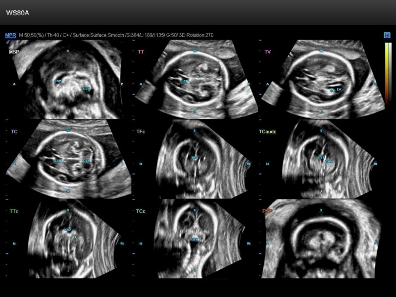 - Модуль HDVI (High Definition Volume Imaging) - повышение четкости изображения границ тканей с разной эхо-плотностью в объемном изображении (диагностика тонких повреждений тканей, дефектов мозга плода, стенок и клапанов сердца плода).