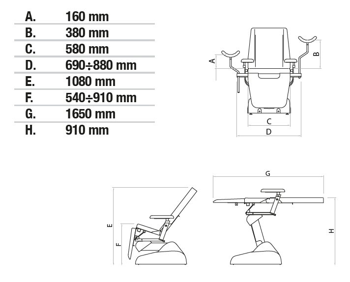Габариты гинекологического кресла IVY: